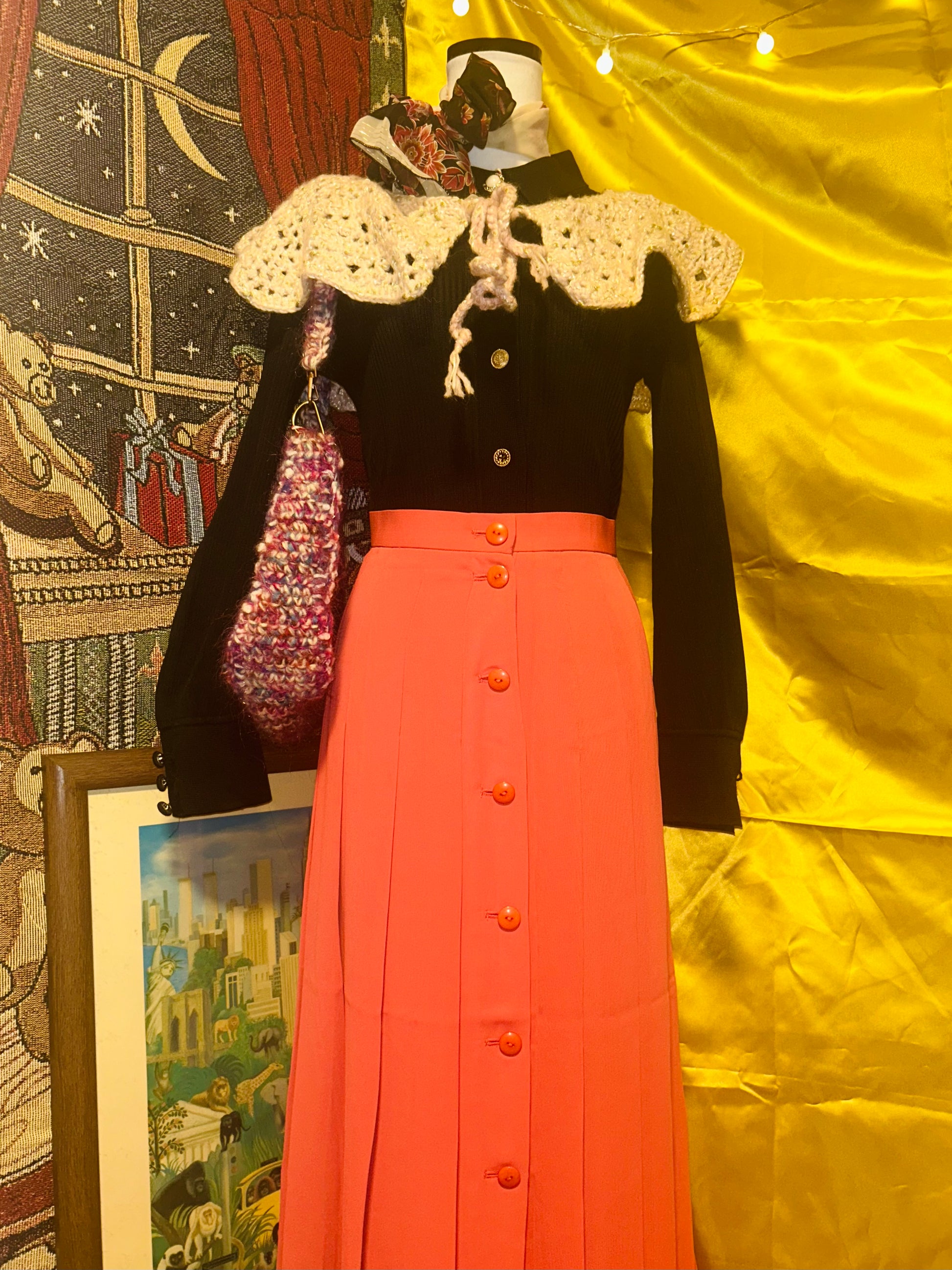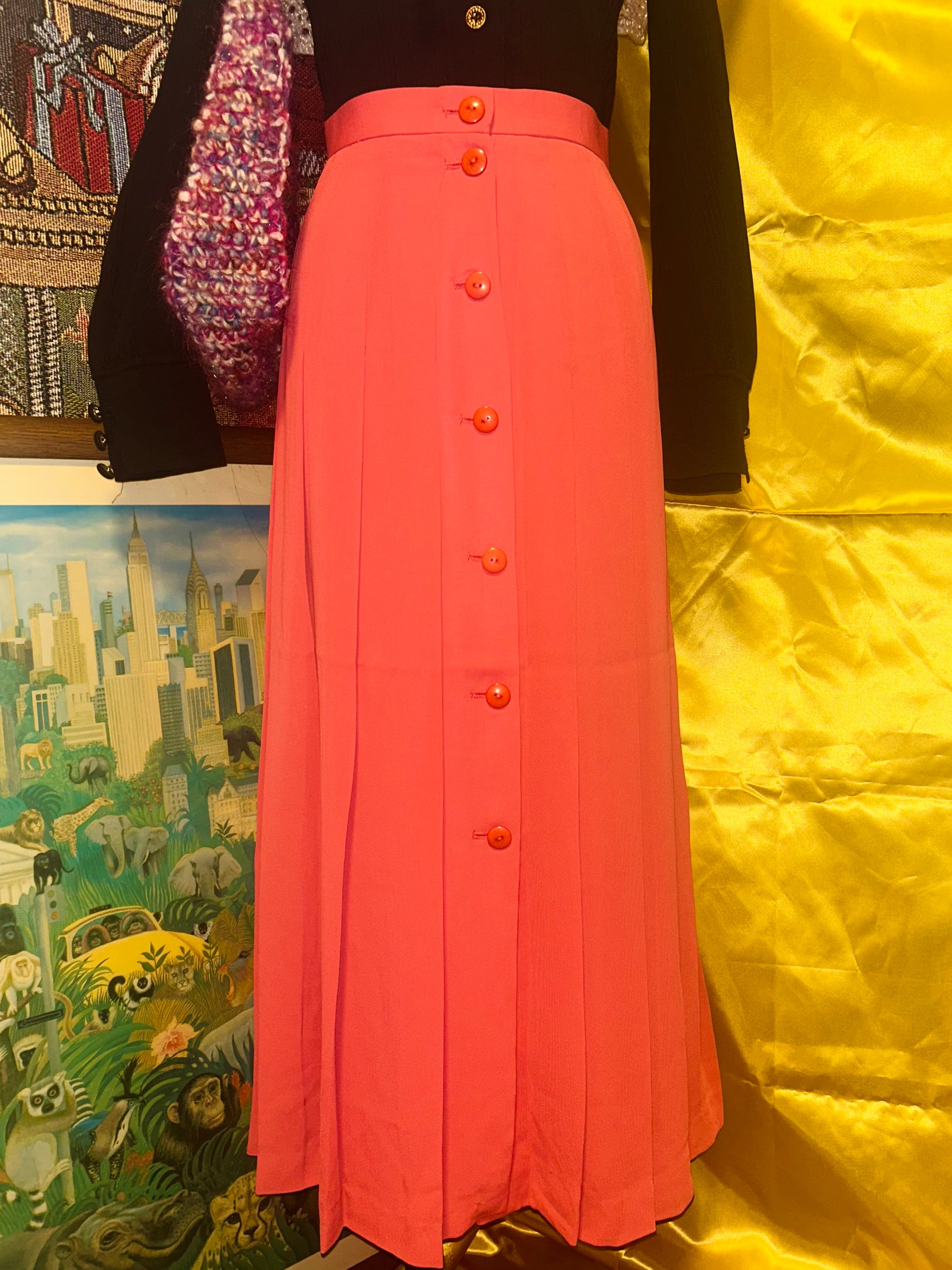 レトロなフロントボタン付きフレアスカート